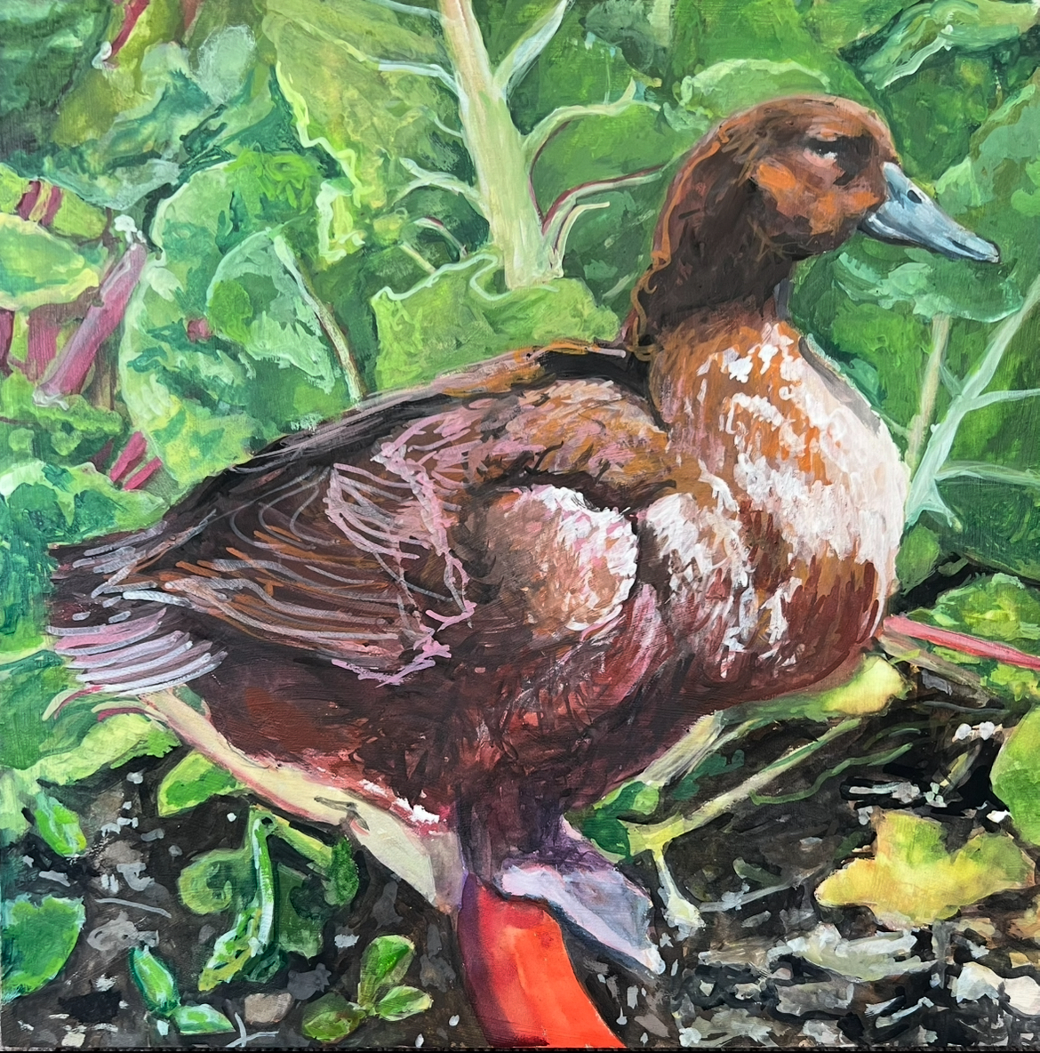 Brown Duck 14″ x 14″ gouache on wood