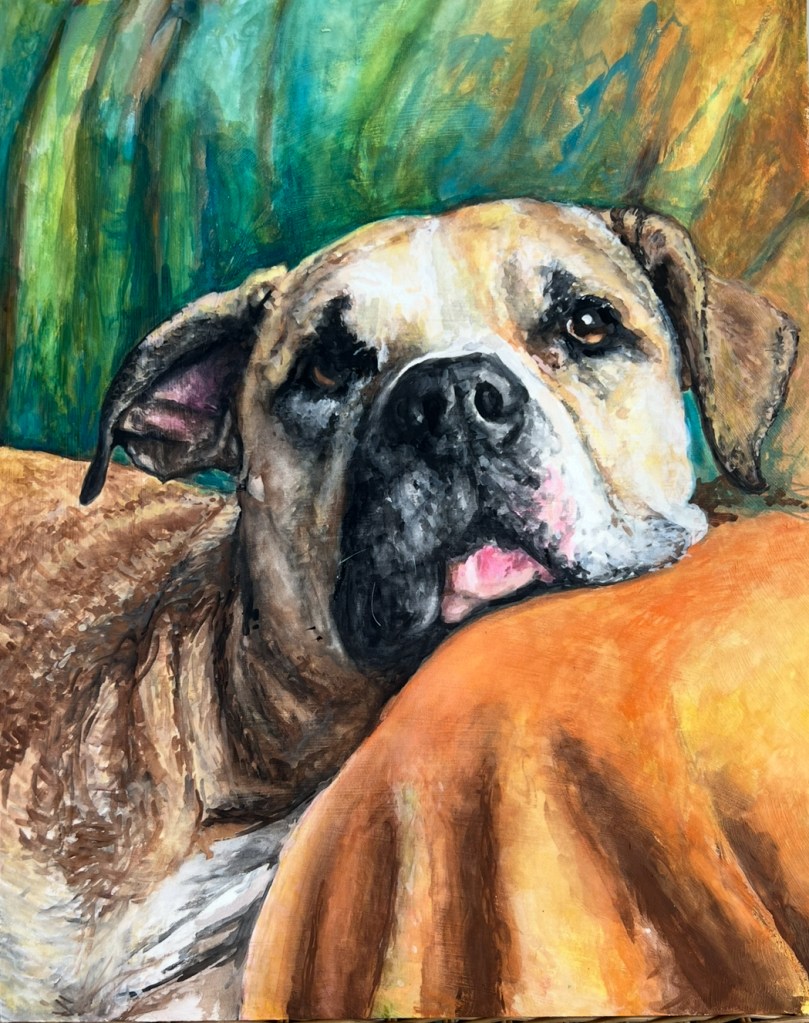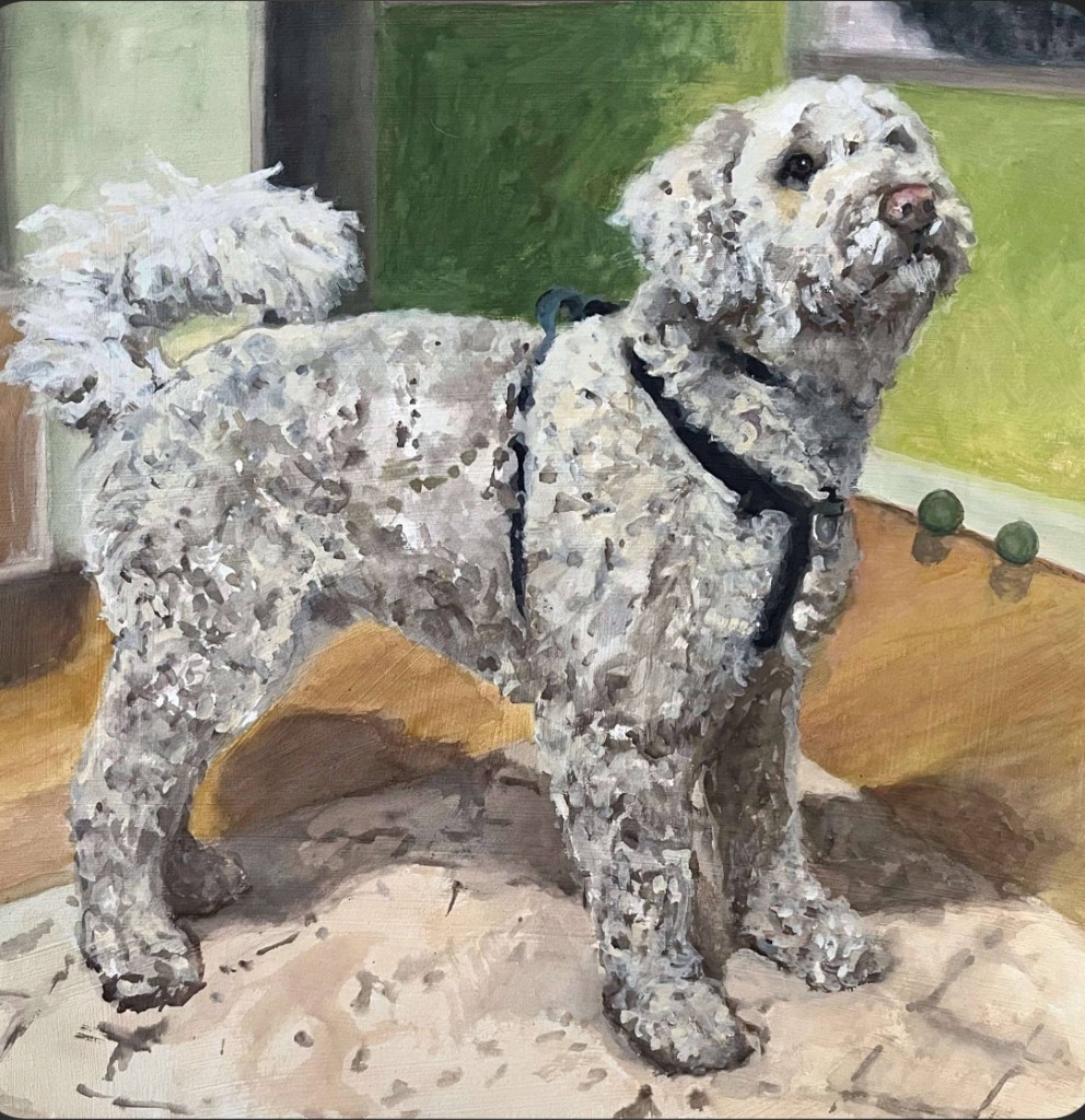 Babette 18″ x 18″ gouache on wood